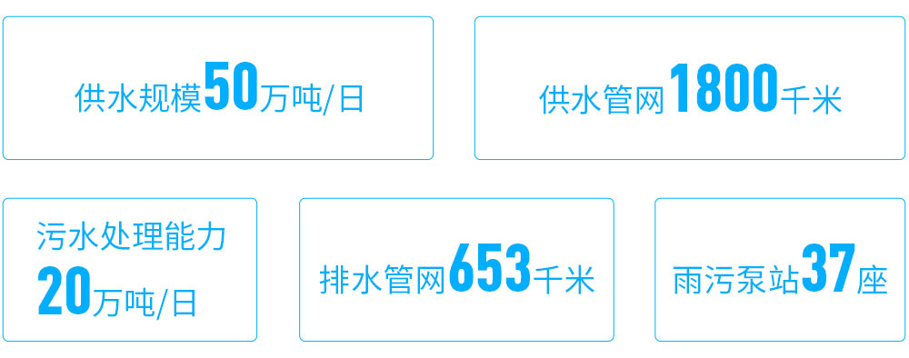 • 涵盖城乡供水、雨水、排水、污水、再生水处理以及管网、泵站建设运营、防洪防汛等,实现厂、网、站、汛一体化运营。