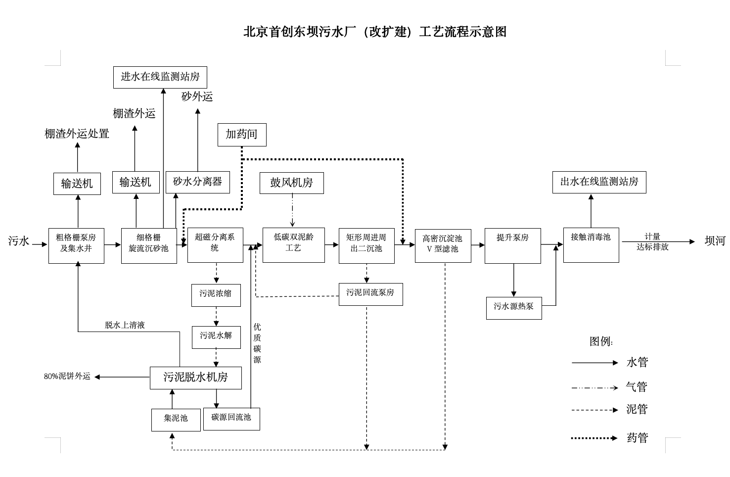 污泥处置:剩余污泥经离心脱水机脱水至含水率低于 80%,外运至北京城市排水集团有限责任公司下属污泥处理中心采用“热水解 +厌氧消化+板框深度脱水”工艺处置,污泥无害化处置率达到100%。